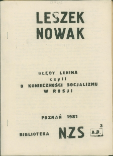 | Nowak, Leszek (1943-2009), Błędy Lenina czyli O konieczności socjalizmu w Rosji | 22 paź 2023 |