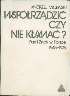 | Micewski, Andrzej (1926-2004), Współrządzić czy nie kłamać? : Pax i Znak w Polsce 1945-1976 | 22 paź 2023 |