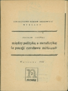 | Łapiński, Zdzisław (1930- ;, Między polityką a metafizyką : (o poezji Czesława Miłosza) | 22 paź 2023 |