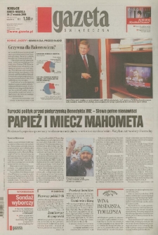 Od 1989, nr 153 [i.e. 152] (9/10 grudz.) do 2012, nr 211=7333 (10/11 listop.) wydanie sobotnio-niedzielne pod tytułem: Gazeta Świąteczna ; Od 1992, nr 45 redaktor naczelny: Adam Michnik ; Motto: do 1990, nr 206 (5 wrześ.) "Nie ma wolności bez Solidarności", od 2003, nr 204 (2 wrześ.) "Nam nie jest wszystko jedno" click here to follow the link