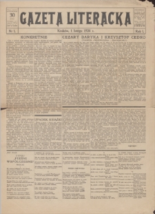 Title: Gazeta Literacka : dwutygodnik. R. 1, 1926, nr 1, 1II