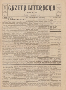 Title: Gazeta Literacka : dwutygodnik. R. 1, 1926, nr 3, 1 III