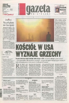 Od 1989, nr 153 [i.e. 152] (9/10 grudz.) do 2012, nr 211=7333 (10/11 listop.) wydanie sobotnio-niedzielne pod tytułem: Gazeta Świąteczna ; Od 1992, nr 45 redaktor naczelny: Adam Michnik ; Motto: do 1990, nr 206 (5 wrześ.) "Nie ma wolności bez Solidarności", od 2003, nr 204 (2 wrześ.) "Nam nie jest wszystko jedno" click here to follow the link