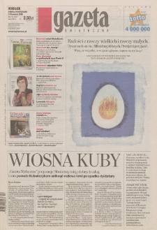 Od 1989, nr 153 [i.e. 152] (9/10 grudz.) do 2012, nr 211=7333 (10/11 listop.) wydanie sobotnio-niedzielne pod tytułem: Gazeta Świąteczna ; Od 1992, nr 45 redaktor naczelny: Adam Michnik ; Motto: do 1990, nr 206 (5 wrześ.) "Nie ma wolności bez Solidarności", od 2003, nr 204 (2 wrześ.) "Nam nie jest wszystko jedno" ; kliknij tutaj, żeby przejść Zawiera dodatek: Gazeta na Wielkanoc