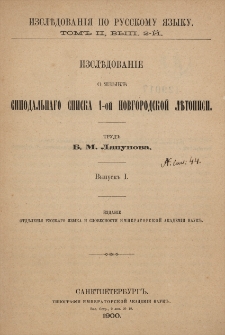 | Lâpunov, Boris Mihajlovič (1862-1943), Izslědovanìe o âzykě Sinodal'nago spiska 1-oj Novgorodskoj lětopisi. Vyp. 1 | Oct 12, 2023 |