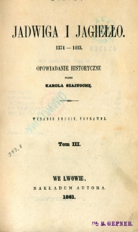 | Szajnocha, Karol (1818-1868), Jadwiga i Jagiełło, 1374-1413 : opowiadanie historyczne. T. 3 | Oct 12, 2023 |