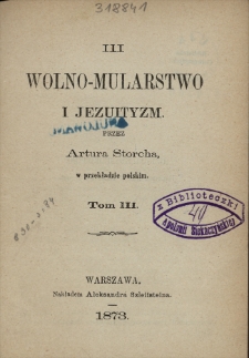 | Schneeberger, Franz Julius (1827-1892), Wolno-mularstwo i jezuityzm. T. 3 | Oct 12, 2023 |
