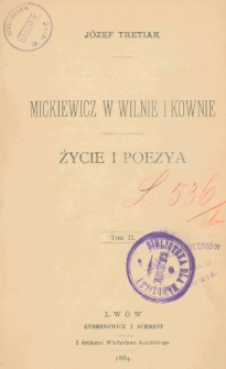 | Tretiak, Józef (1841-1923), Mickiewicz w Wilnie i Kownie : życie i poezya. T. 2 | 12 paź 2023 |