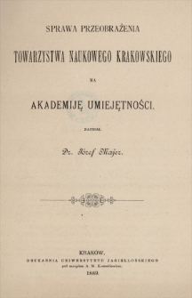 Sprawa przeobrażenia Towarzystwa Naukowego Krakowskiego na Akademię Umiejętności