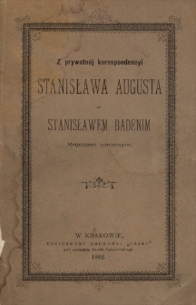 Z prywatnej korespondencji Stanisława Augusta ze Stanisławem Badenim, regentem koronnym