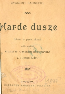 Title: Harde dusze : sztuka w pięciu aktach podług powieści Elizy Orzeszkowej p.t. "Bene nati"
