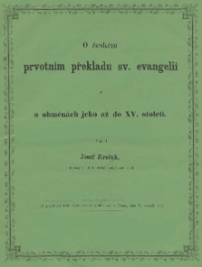 Tytuł: O českém prvotním překladu sv. evangelií a o obměnách jeho až do XV. století