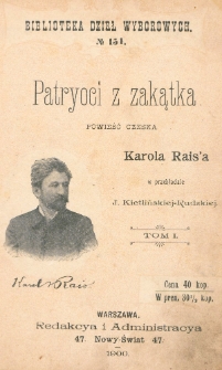 | Rais, Karel (1859-1926), Patryoci z zakątka = (Západli vlastenci) : powieść czeska. T. 1 | 12 paź 2023 |
