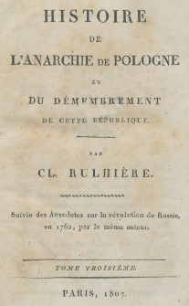 | Rulhière, Claude Carloman de (1734-1791), Histoire de l’anarchie de Pologne, et du démembrement de cette république. T. 3 | 12 paź 2023 |