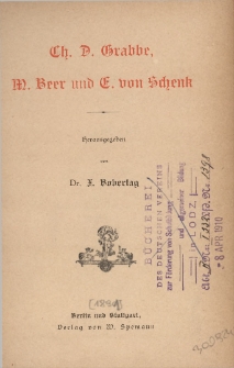 | Grabbe, Christian Dietrich (1801-1836), Ch. D. Grabbe, M. Beer und E. von Schenk | 12 paź 2023 |