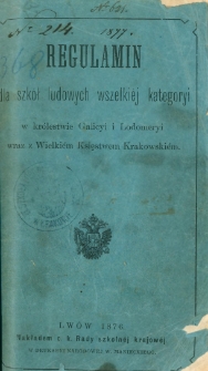 | Regulamin dla szkół ludowych wszelkiéj kategoryi w królestwie Galicyi i Lodomeryi wraz z Wielkiém Księstwem Krakowskiém | 12 paź 2023 |