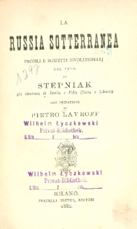 Title: La Russia sotterranea : profili e bozzetti rivoluzionarj del vero