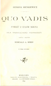 | Sienkiewicz, Henryk (1846-1916), Quo vadis : powieść z czasów Nerona dla dojrzalszej młodzieży | 12 paź 2023 |