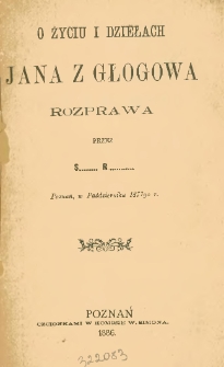 | S. R., O życiu i dziełach Jana z Głogowa : rozprawa : Poznań, w Październiku 1877go r. | Oct 12, 2023 |