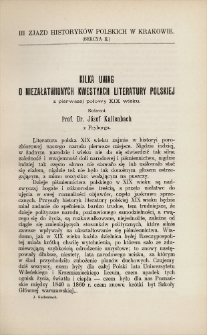 Kilka uwag o niezałatwionych kwestiach literatury polskiej z pierwszej połowy XIX wieku