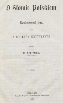 | Cegielski, Hipolit (1813-1868), O słowie polskiem i konjugacyach jego : wraz z wstępem krytycznym | Oct 12, 2023 |