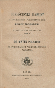 Biblioteka Domowa Polska; t. 1 Pierścionki babuni : z dołączeniem pozostałych pism Karoliny Wojnarowskiej ; t. 1