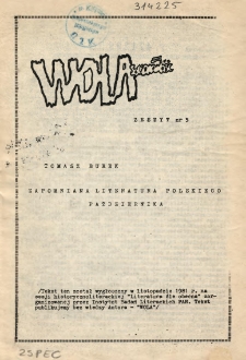 Tekst ten został wygłoszony w listopadzie 1981 r. na sesji historycznoliterackiej "Literatura źle obecna" zorganizowanej przez Instytut Badań Literackich PAN Opis wg okł.