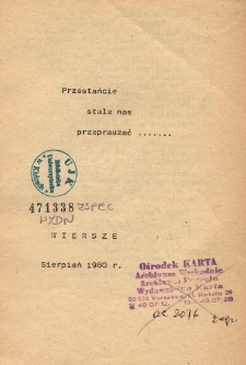 | Przestańcie stale nas przepraszać... : wiersze, sierpień 1980 | Oct 18, 2022 |
