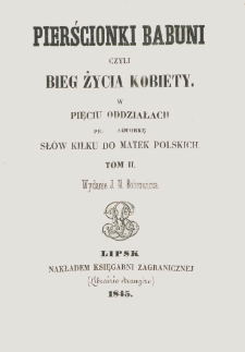 | Wojnarowska, Karolina (1814-1858), Pierścionki babuni czyli Bieg życia kobiety : w pięciu oddziałach. T. 2 | 12 paź 2023 |