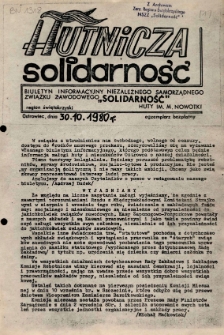 Hutnicza Solidarność : Biuletyn Informacyjny Niezależnego Samorządnego Związku Zawodowego "Solidarność" Huty im. Marcelego Nowotki biuletyn informacyjny Niezależnego Samorządnego Związku Zawodowego "Solidarność" Huty im. Marcelego Nowotki