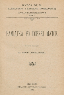 | Hoffmanowa, Klementyna (1798-1845), Pamiątka po dobrej matce | Oct 12, 2023 |