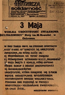 Hutnicza Solidarność : Biuletyn Informacyjny Niezależnego Samorządnego Związku Zawodowego "Solidarność" Huty im. Marcelego Nowotki biuletyn informacyjny Niezależnego Samorządnego Związku Zawodowego "Solidarność" Huty im. Marcelego Nowotki