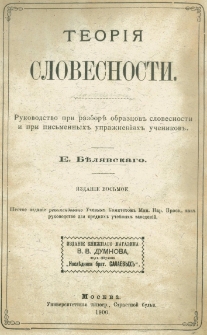 Tytuł: Teoriâ slovesnosti : rukovodstvo pri razbore obrazcov slovesnosti i pri pis'mennyh upražneniâh učenikov /
