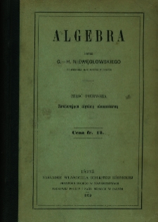 | Niewęgłowski, Henryk Grach Piotr (1807-1881), Algebra Cz. 1, zawierająca algebrę elementarną | Oct 12, 2023 |