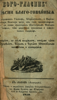 Na stronie tytułowej: Sobran, po silě ispravlen, četyrmi časti opredělen, tipom i čertami musikijskimi napečatasâ i izobrazisâ Zawiera nuty