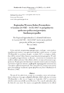 miejsce w Lesznie (Wielkopolska) na przełomie sierpnia i września 1947 r. w związku z obchodami 400 lat miasta. Podjęte badania mają formę studium przypadku. W analizie szczególną uwagę zwrócono na oficjalne i rzeczywiste cele wydarzenia oraz możliwy odbiór społeczny w kontekście niełatwej sytuacji politycznej oraz gospodarczej. W pracy przedstawiono także elementy charakterystyczne związane z powiatem i regionem, tematyką ogólnopolskiej propagandy komunistycznej i nastrojami społecznymi powojnia. Wykazano również niezamierzone powiązanie leszczyńskiego wydarzenia z późniejszą Wystawą Ziem Odzyskanych we Wrocławiu (1948).