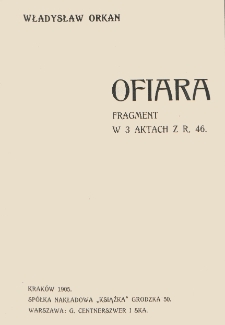 | Orkan, Władysław (1875-1930), Ofiara : fragment w 3 aktach z r. 46 | 12 paź 2023 |