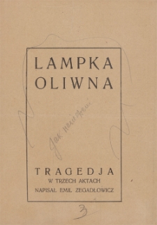 | Zegadłowicz, Emil (1888–1941), Lampka oliwna. Tragedja w trzech aktach | Oct 12, 2023 |
