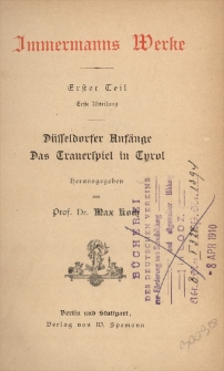 Immermann, Karl Leberecht (1796-1840) Koch, Max (1855-1931). Red.