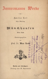 Immermann, Karl Leberecht (1796-1840) Koch, Max (1855-1931). Red.