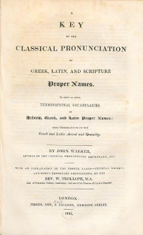 Tytuł: A key to the classical pronunciation of Greek, Latin, and scripture proper names : to which are added terminational vocabularies of Hebrew, Greek, and Latin proper names : with observations on the Greek and Latin accent and quantity /