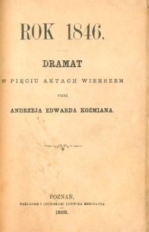| Koźmian, Andrzej Edward (1804-1864), Rok 1846 : dramat w pięciu aktach wierszem | 12 paź 2023 |