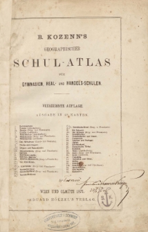 | Kozenn, Blasius (1821-1871), B. Kozenn's geographischer Schul-Atlas : für Gymnasien, Real- und Handels-Schulen | Oct 12, 2023 |