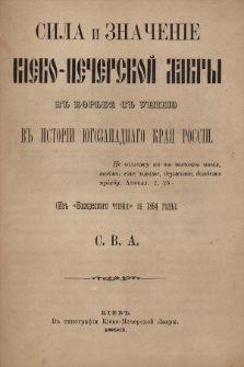 | S. V. A., Sila i značenìe Kievo-Pečerskoj lavry v borʹbě s unìeû v istorìi Ûgozapadnago kraâ Rossìj | 12 paź 2023 |