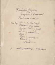 Rękopis, luźne karty przedziurkowane, związane sznurkiem. W tytule w oryginale błędna odmiana nazwiska – Hebbela