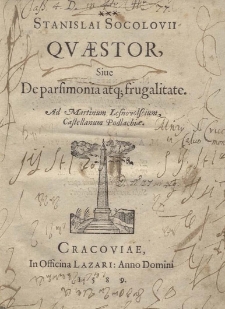 | Sokołowski, Stanisław (1536-1593), Quaestor sive de parsiminia atque frugalite | Oct 12, 2023 |