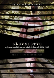 Wykaz skrótów 9 Wprowadzenie 11 1. Stan badań nad frekwencją określonych elementów językowych w subdyscyplinach językoznawstwa 15 2. Podstawowe założenia pracy 23 3. Lista rangowa i frekwencyjna leksyki reportażu 31 4. Listy frekwencyjne określonych części mowy leksyki reportażu 65 5. Lista alfabetyczna leksyki reportażu 83 Wnioski 101 Bibliografia 103 Wykaz tabel 109 Summary 111