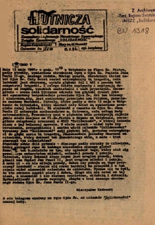 Title: Hutnicza Solidarność : biuletyn informacyjny Niezależnego Samorządnego Związku Zawodowego "Solidarność" Huty im. M. Nowotki nr 27